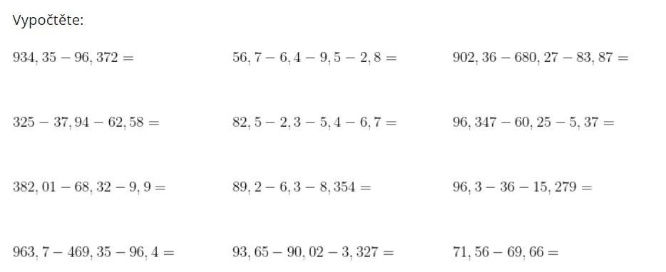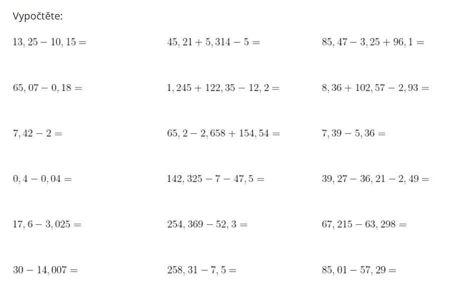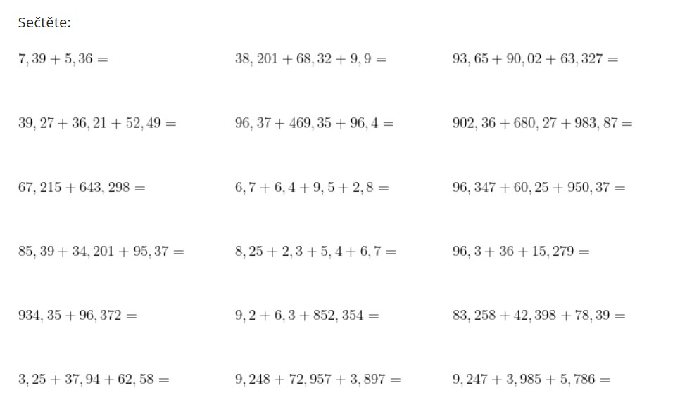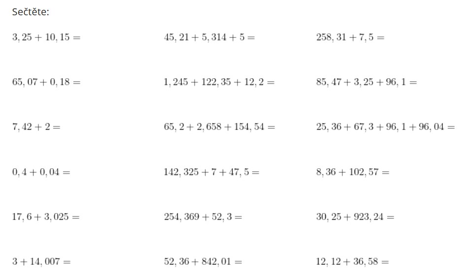Desetinná čísla - sčítání a odčítání