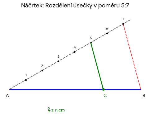 Zkraťte úsečku délky 11 cm na 5/7 její původní délky.