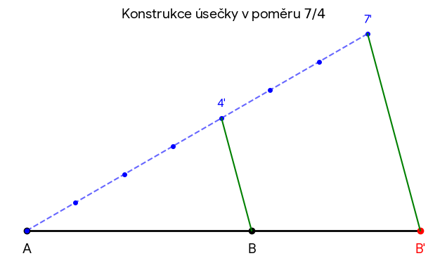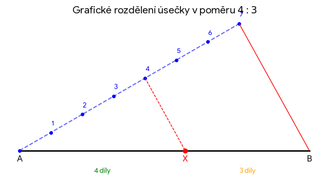 Rozdělte úsečku délky 8 cm v poměru 4 : 3.