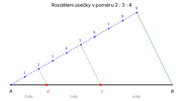Rozdělte úsečku délky 10 cm v poměru 2 : 3 : 4.