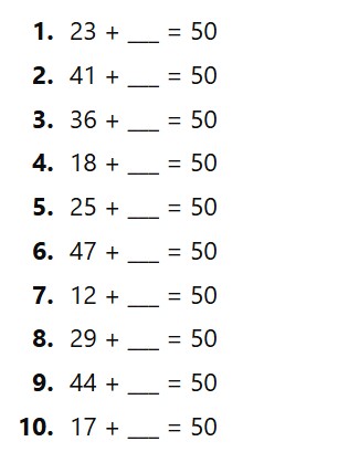 15 + ? = 50 → 5