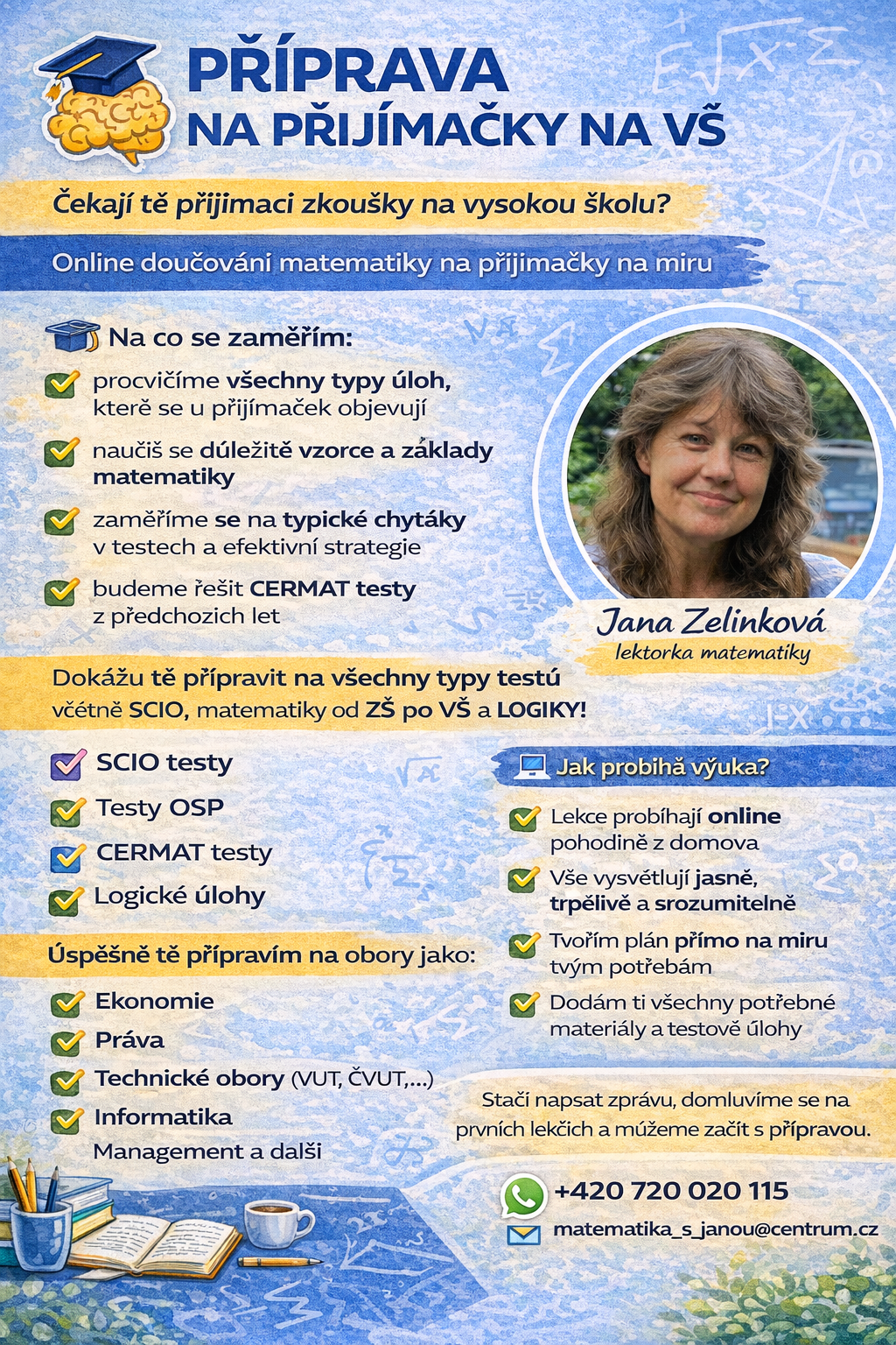 Přijímačky na vysokou školu bývají jiné než běžná středoškolská matematika. Často prověřují nejen znalosti, ale hlavně schopnost rychle přemýšlet, spojovat souvislosti a řešit úlohy pod časovým tlakem.