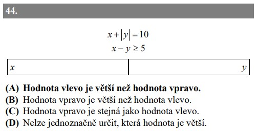 Rozhodněte, zda platí x > y.