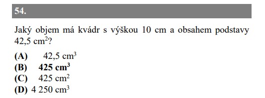 Kvádr má obsah podstavy 42,5 cm² a výšku 10 cm. Jaký je jeho objem?