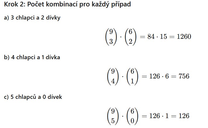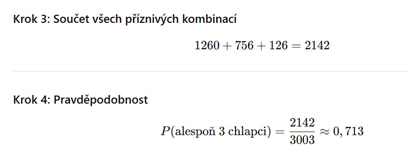 Chceme: pravděpodobnost, že v týmu budou alespoň 3 chlapci