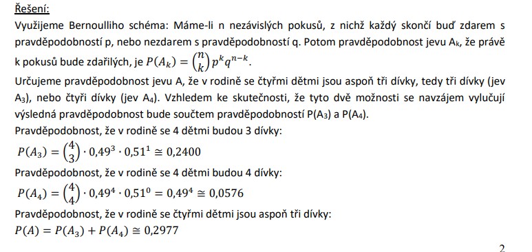 Jaká je pravděpodobnost, že v rodině se čtyřmi dětmi jsou aspoň tři dívky, jestliže pravděpodobnost narození chlapce je 0,51?